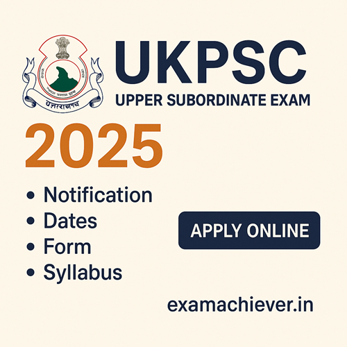 Get complete details of UKPSC Combined State Civil Upper Subordinate Service Exam 2025. Check notification, start date, last date, correction date, application fees, apply link, syllabus, and how to fill the form at ExamAchiever.in.